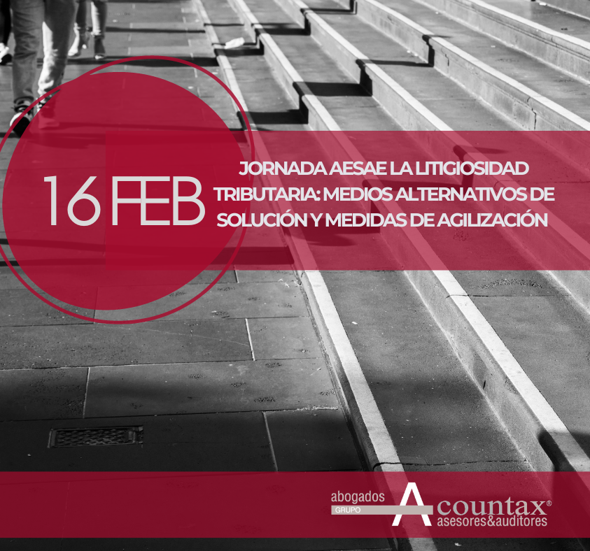 Acountax> Actualidad> Evento 7 de febrero de 2024 La Litigiosidad Tributaria: Medios alternativos de solución y medidas de agilización Este evento será mixto: PRESENCIAL y ONLINE La vinculación de la Administración al principio de legalidad, puede limitar y llegar a excluir espacio para encontrar soluciones acordadas. Por ello, las singularidades propias de este orden...