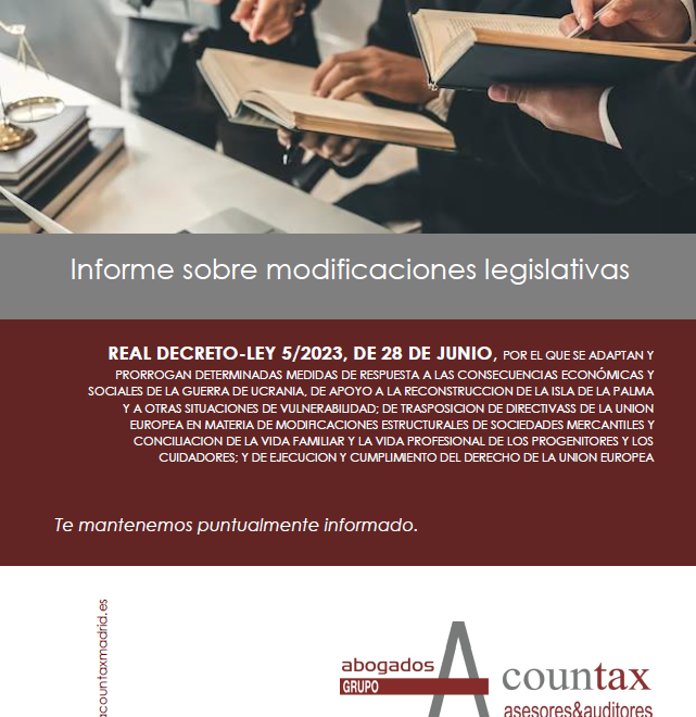 Acountax> Actualidad > Novedades Jurídicas/ Jurisprudencia 3 de julio de 2023 Real Decreto-ley 5/2023, de 28 de junio, por el que se adoptan y prorrogan determinadas medidas de...LEER MÁS