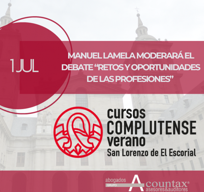 Manuel Lamela, socio director de Accountax, modera el debate "Retos y Oportunidades de las Profesiones" en los cursos de verano de la Universidad Complutense de Madrid en San Lorenzo de...LEER MÁS