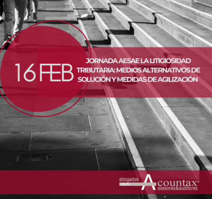 Acountax> Actualidad> Evento 7 de febrero de 2024 La Litigiosidad Tributaria: Medios alternativos de solución y medidas de agilización Este evento será mixto: PRESENCIAL y ONLINE La vinculación de...LEER MÁS
